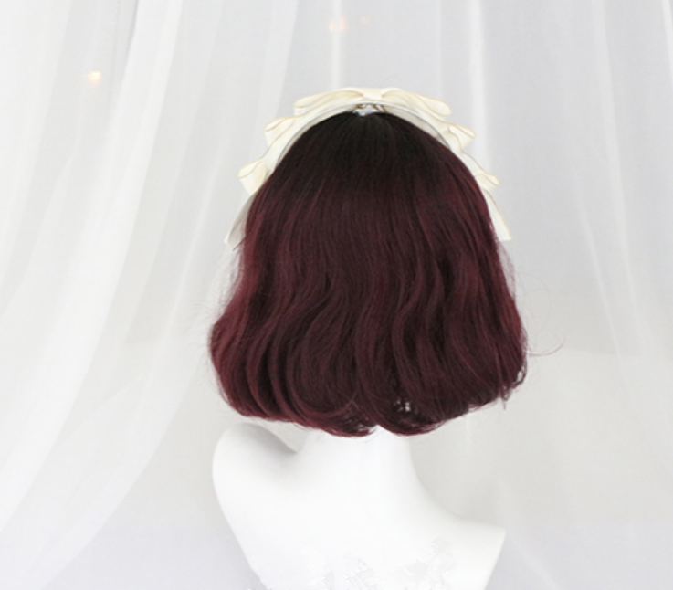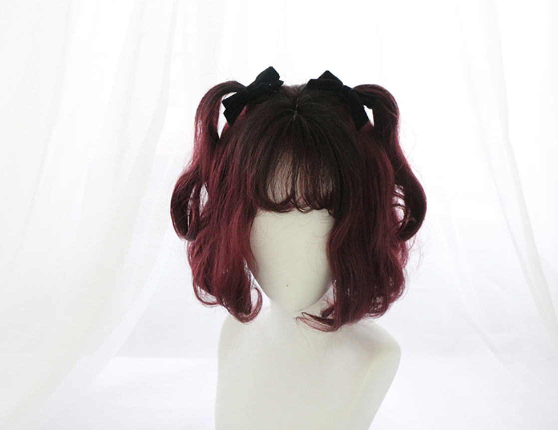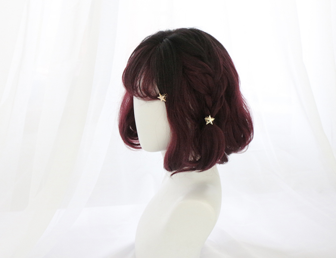 Air Bang Burgundy Gradient Short Curly Wig Halloween Party Costume