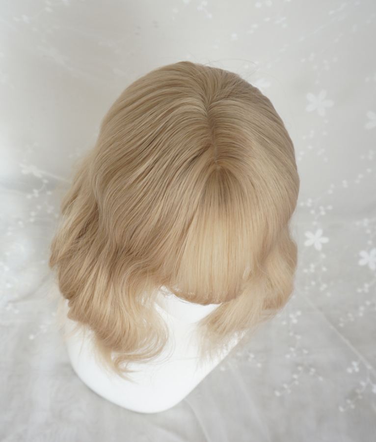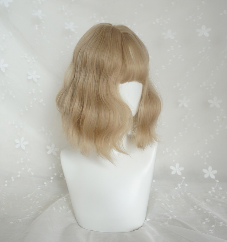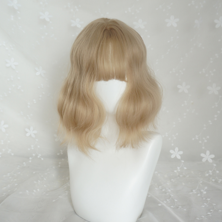 Free Shipping Blonde Short Wavy Air Bang Bobo Wig