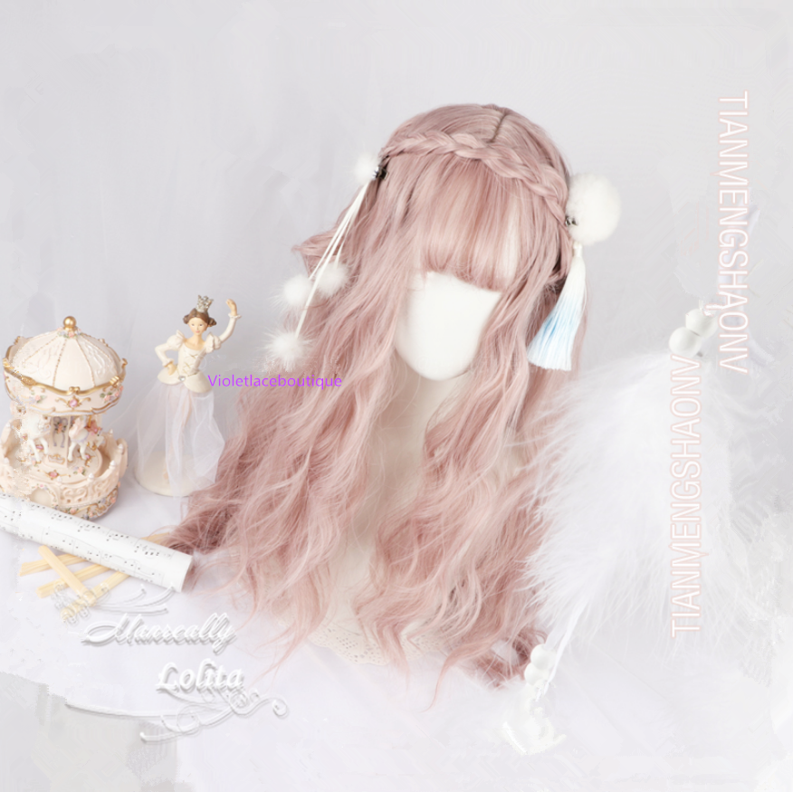 Material:100% High Temperature Fiber Color: pink Modeling: curly Length: 65cm/25.6in Package include: 1 x wig