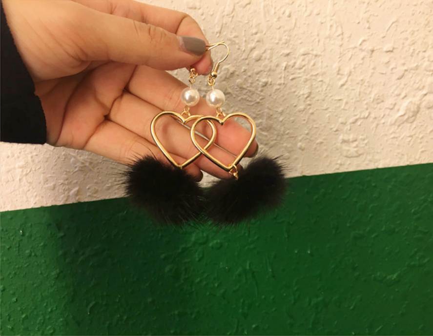 {Free Shipping} Handmade Fur Ball Heart Earrings