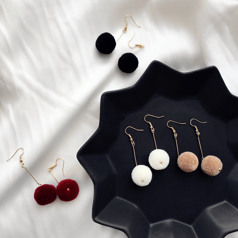 ♡Material: Alloy, Fur ♡Color: White, Black, Khaki, Wine red ♡Package include: 1 pair earrings