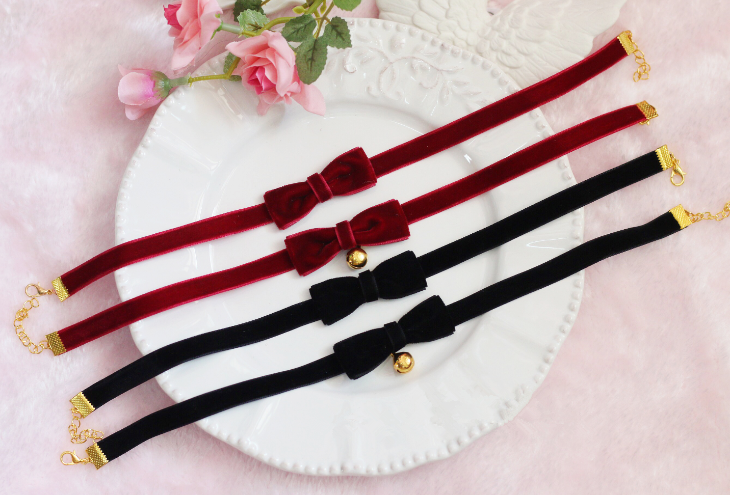 Velvet Bow Bell Ribbon Choker
