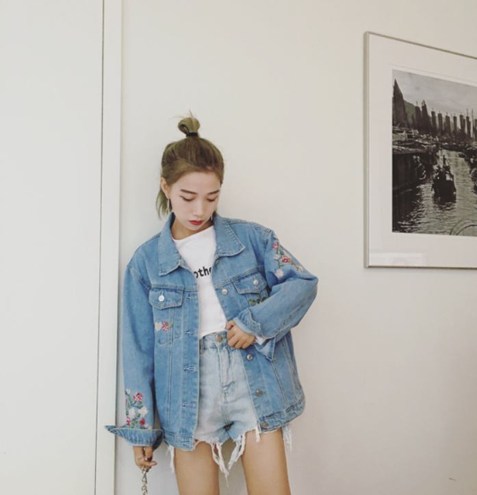 {Free Shipping} Flower Embroidered Denim Jacket Coat