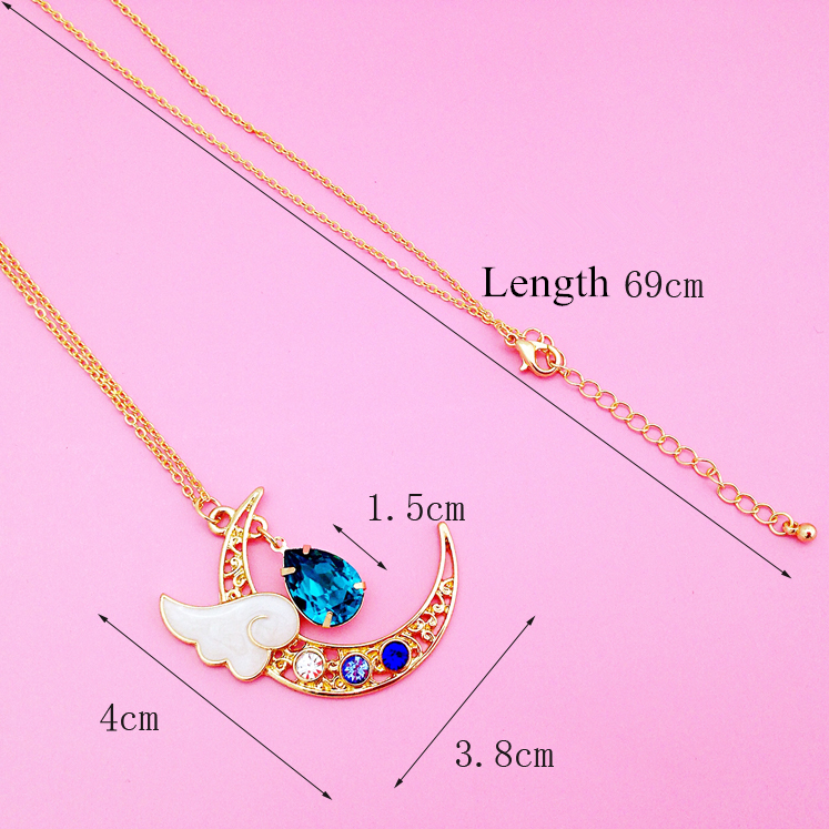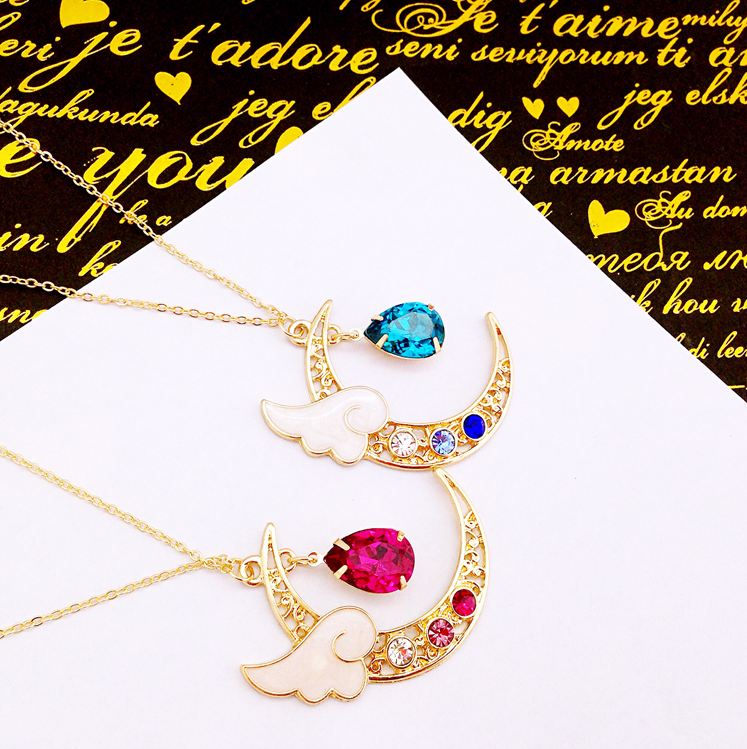 Harajuku Moon Angel Wing Rhinestone Necklace