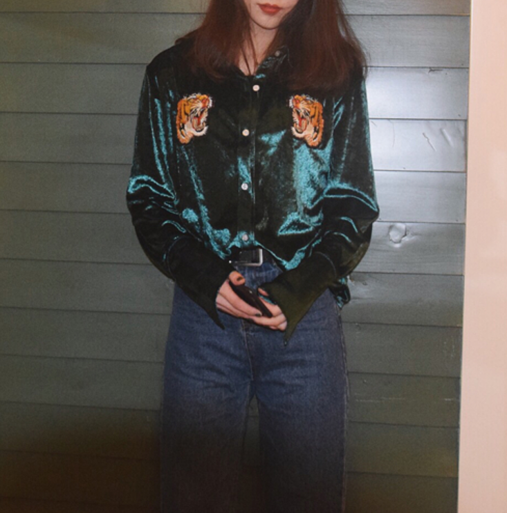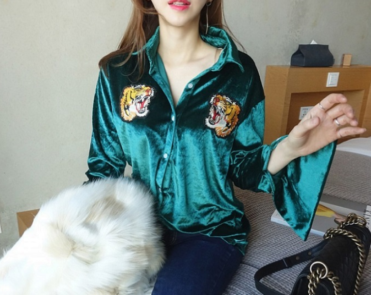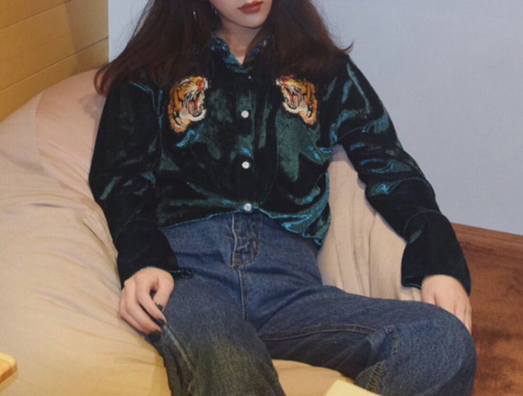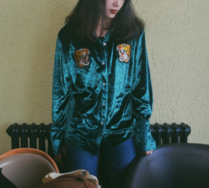 Material: Velvet ♡Color: Green ♡Style: embroidery ♡Size: Length: 68cm / 26.7in Bust: 110cm / 43.3in Sleeve: 57cm / 22.4in