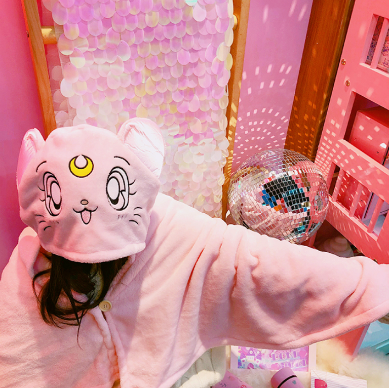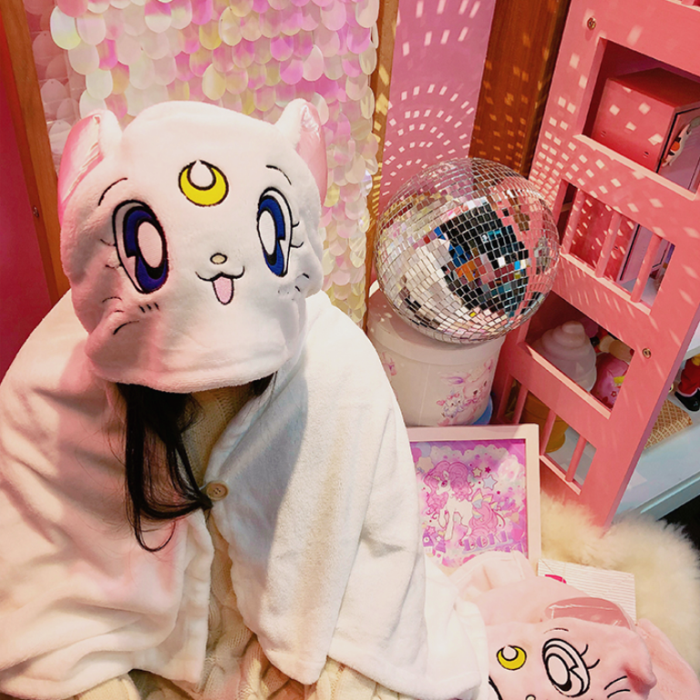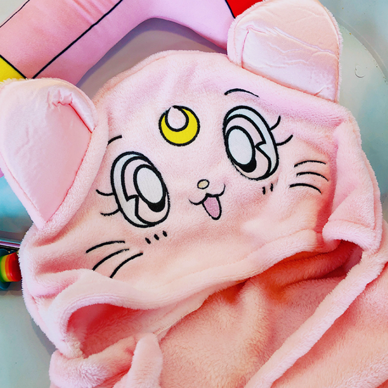 Kawaii Sailor Moon Luna Cat Hooded Cloak Fleece Blanket
