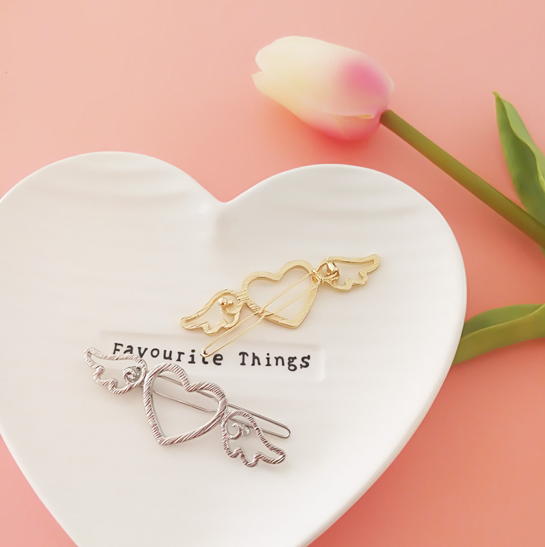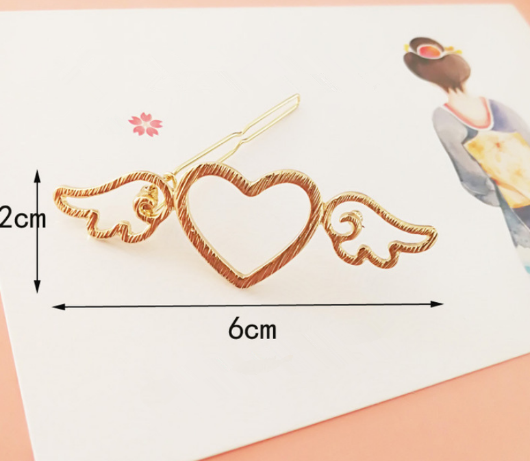 ♡Material: alloy ♡Color: silver, golden ♡Style: heart, wings ♡Dimension: 2 x 6 cm ♡Package include: 2 x hair clip(golden+silver)