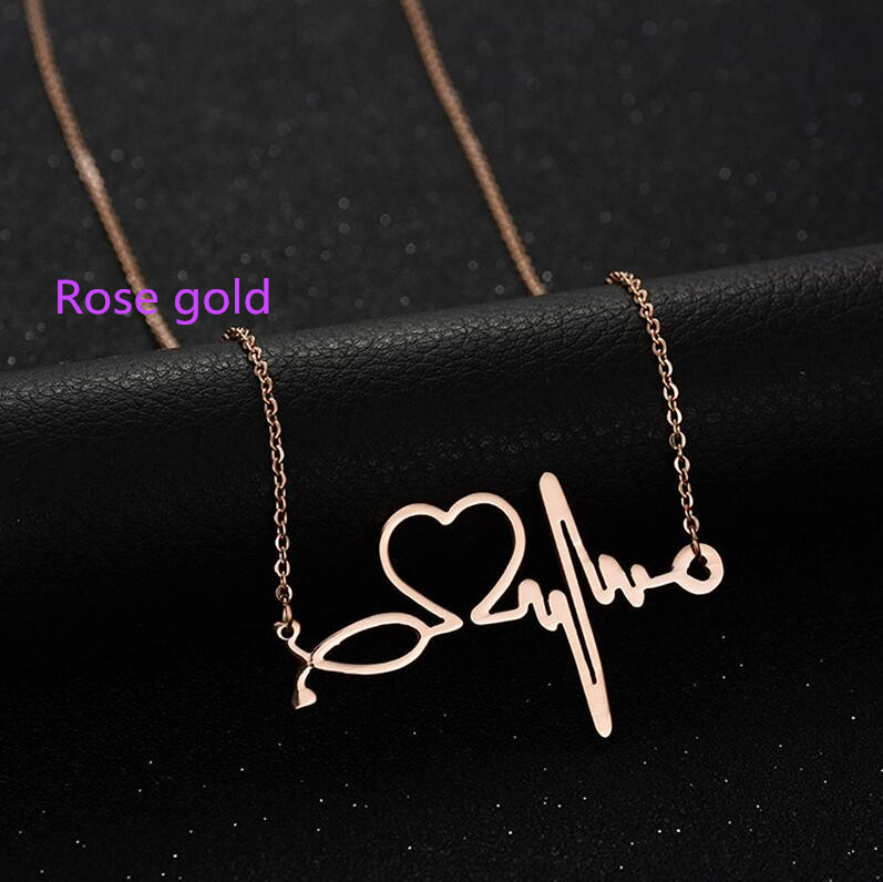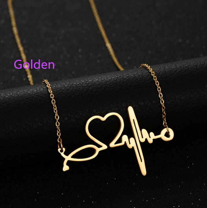 Fashion Love Heart and Heartbeat Necklace