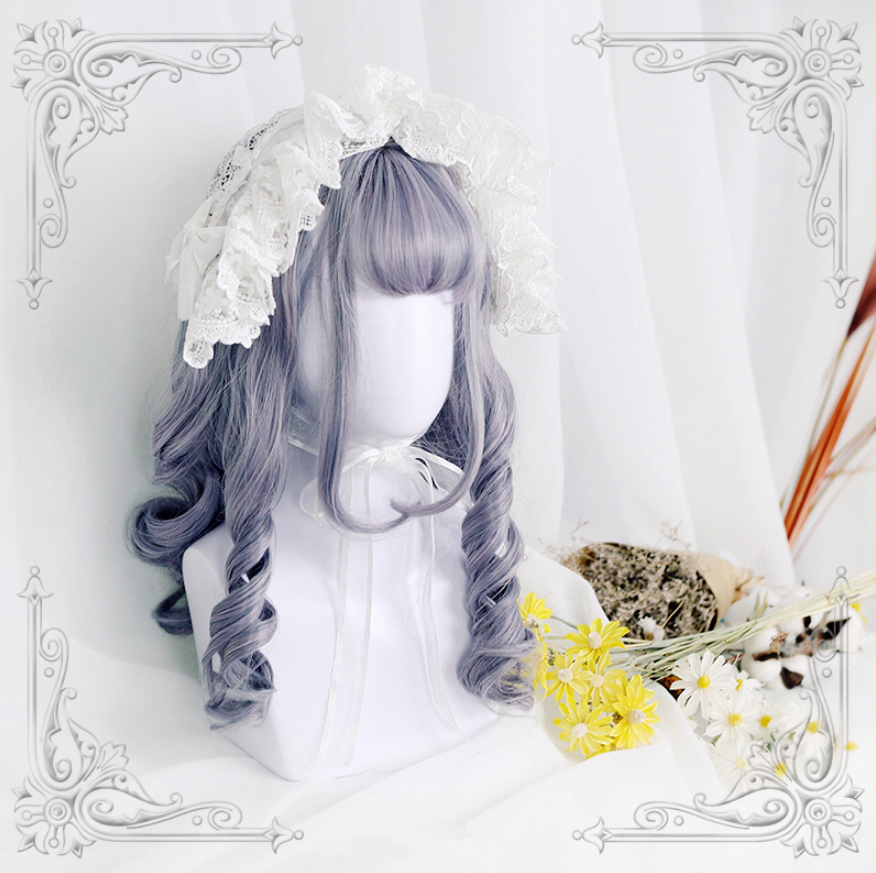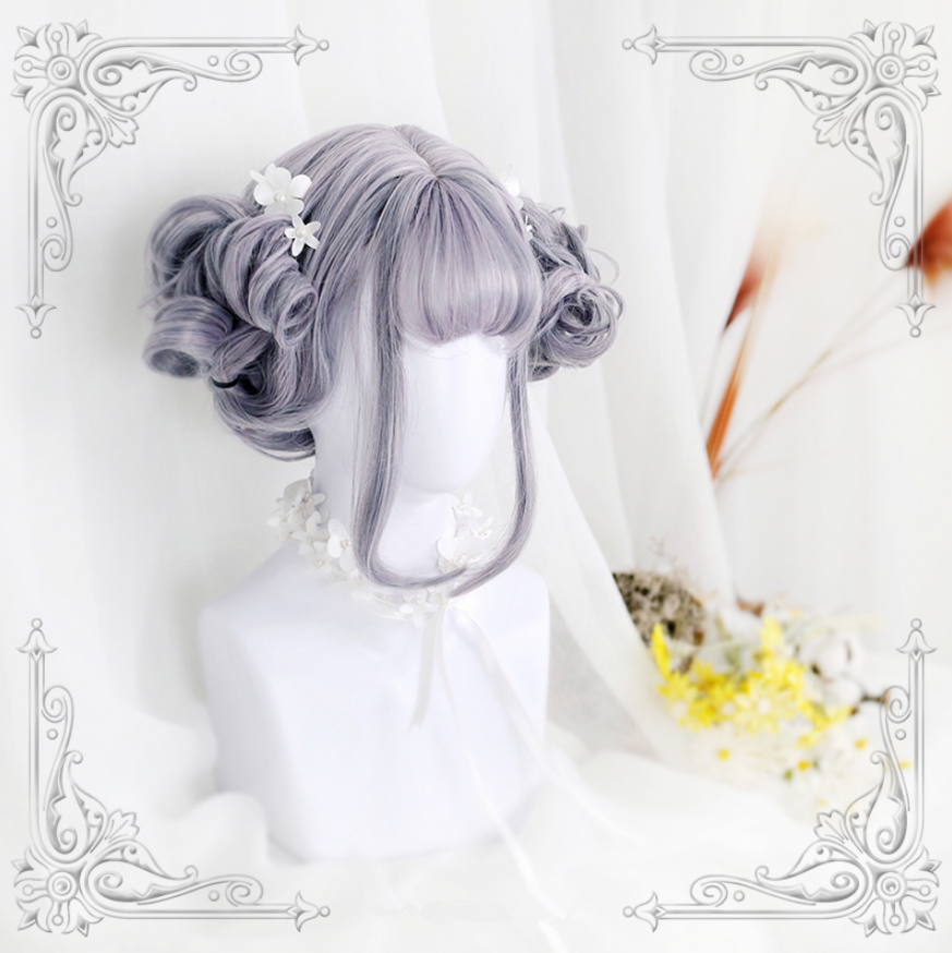 Material:100% High Temperature Fiber Color: gray&purple Modeling: curly Length: 55cm Package include: 1 x wig