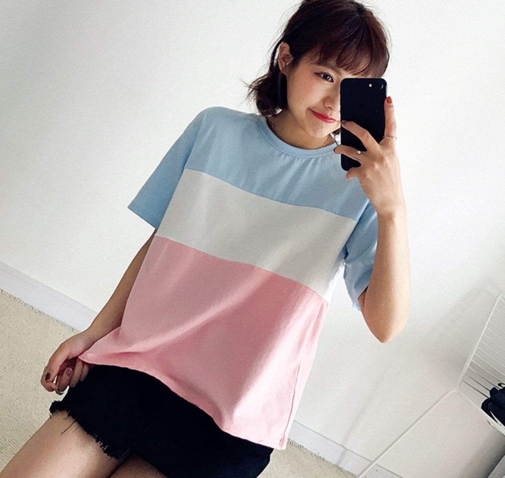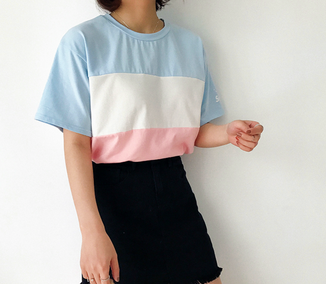 Pastel Color Block Striped Tee