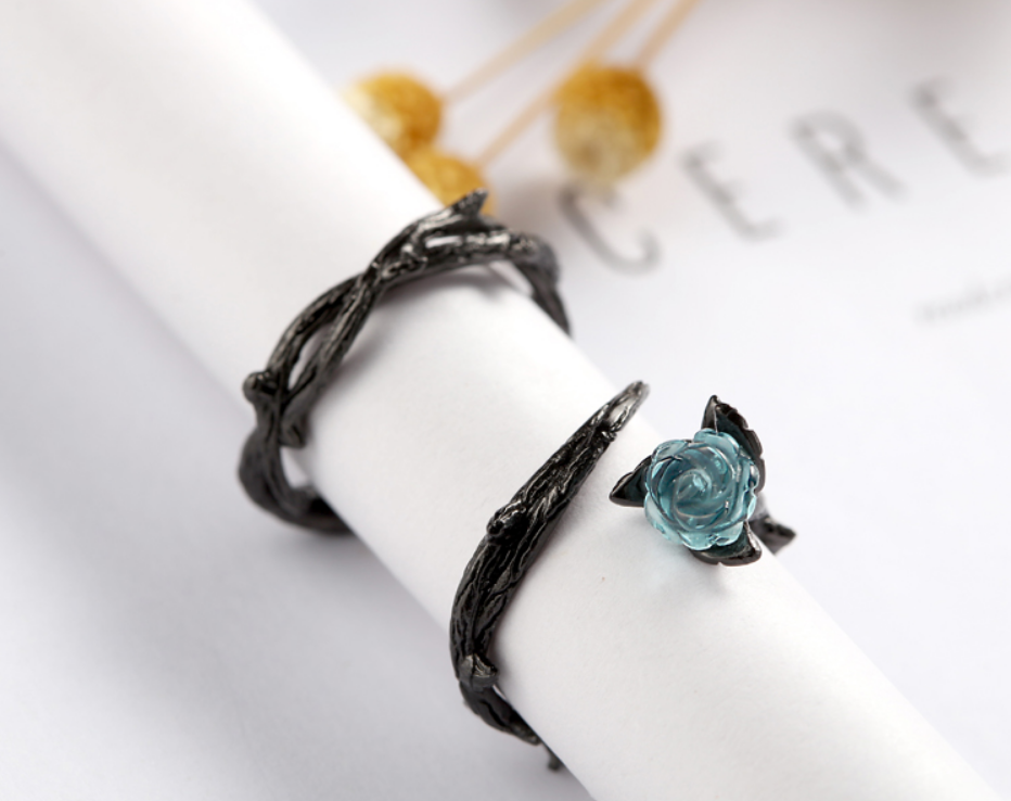 ♡Material: silver, crystal ♡Style: thorn, rose ♡Package include: 1 x ring