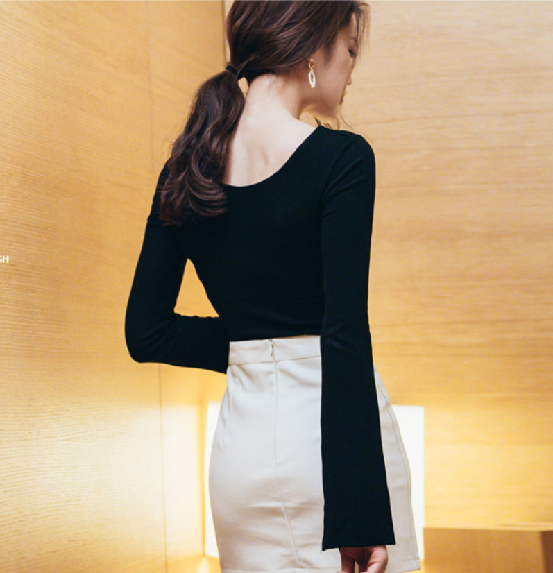 Low-Cut Deep V-Neck Bandage Cross Long Sleeve T-shirt