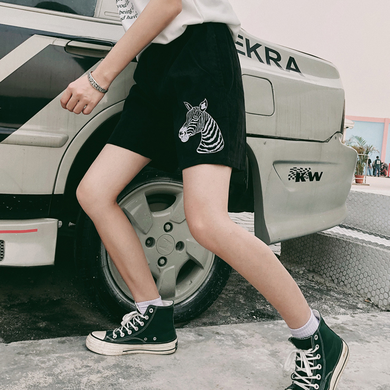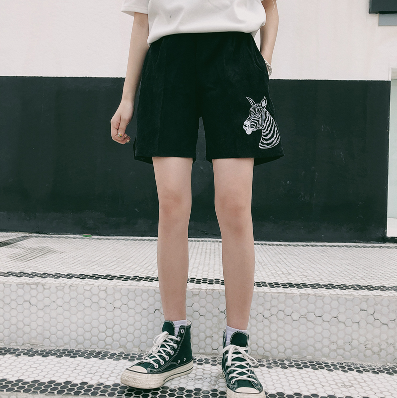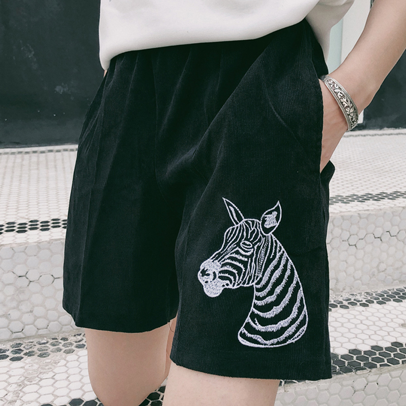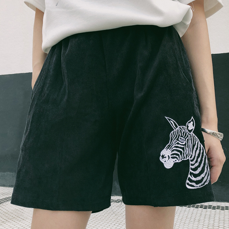 ♡Material: Corduroy ♡Color: black ♡Style: embroidery ♡Size: M: Length: 36cm / 14.2in; Waist: stretchable;