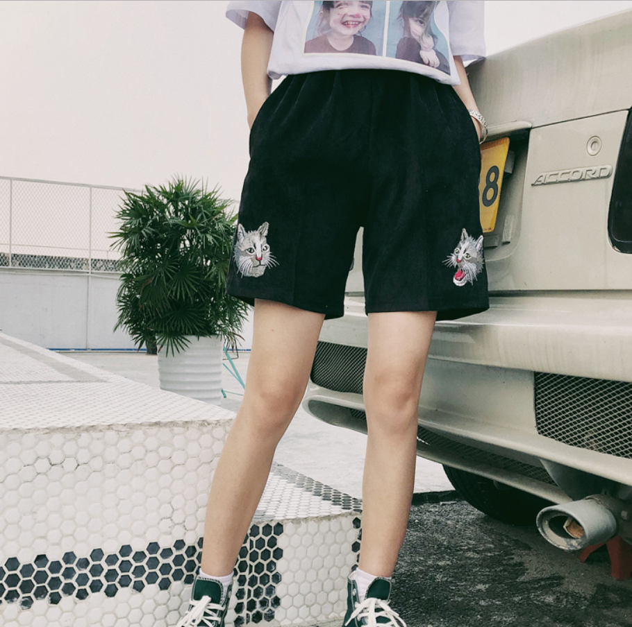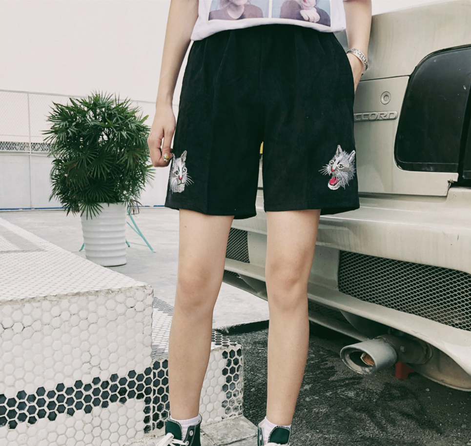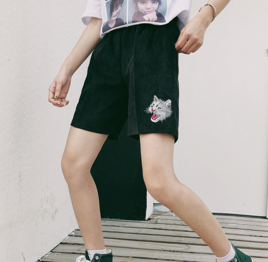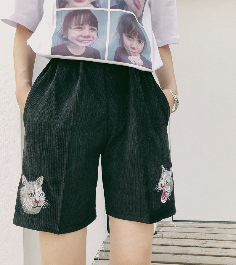 ♡Material: Corduroy ♡Color: black ♡Style: embroidery ♡Size: M: Length: 36cm / 14.2in; Waist: stretchable;