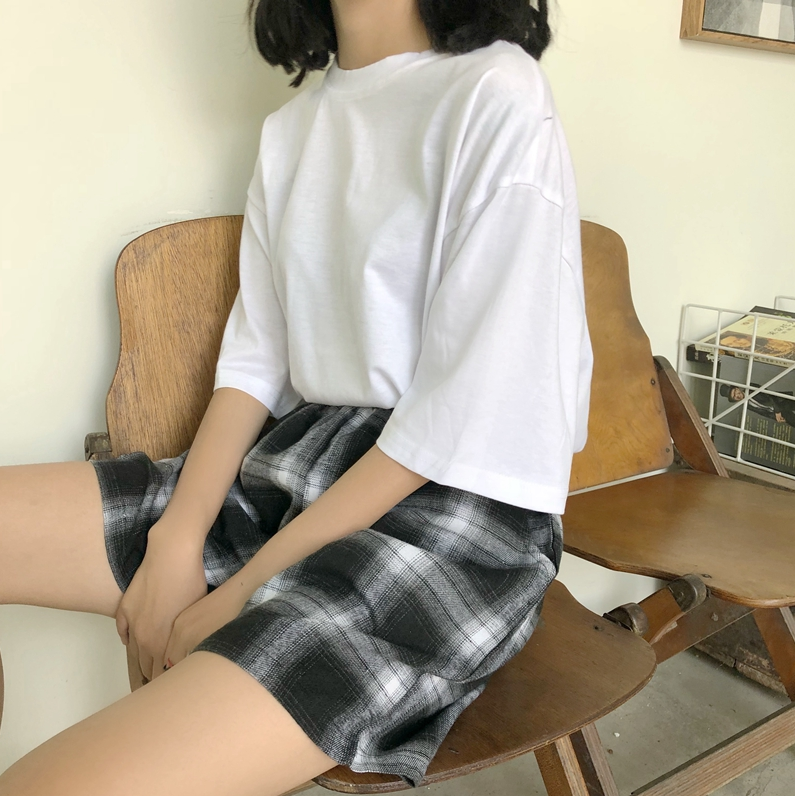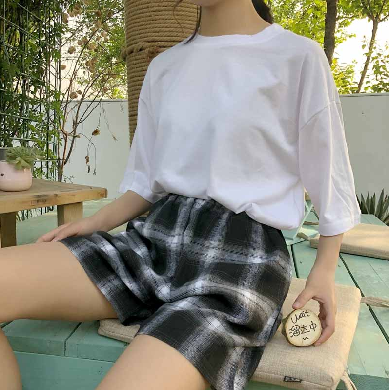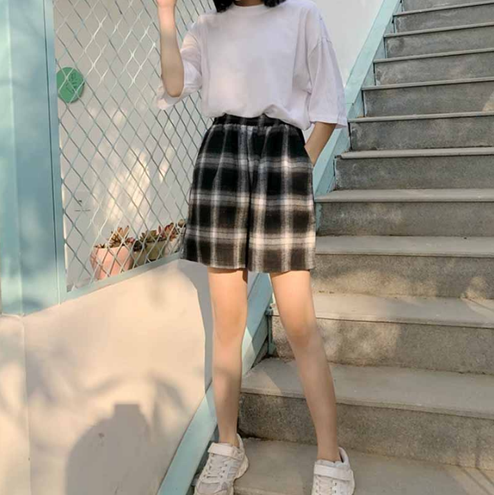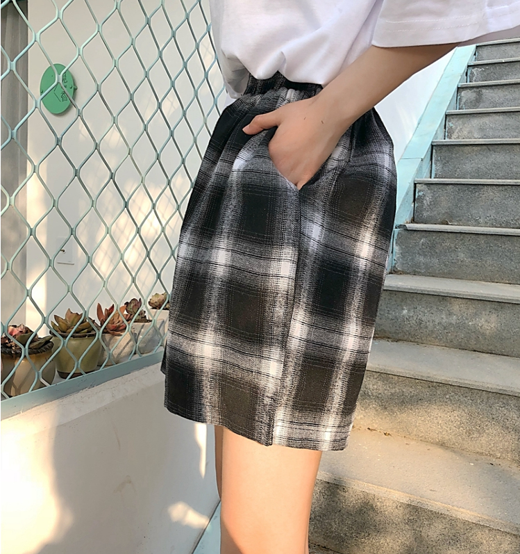 ♡Material: cotton blend ♡Color: black ♡Style: checker ♡Size: Length: 43cm / 16.9in; Waist: stretchable;