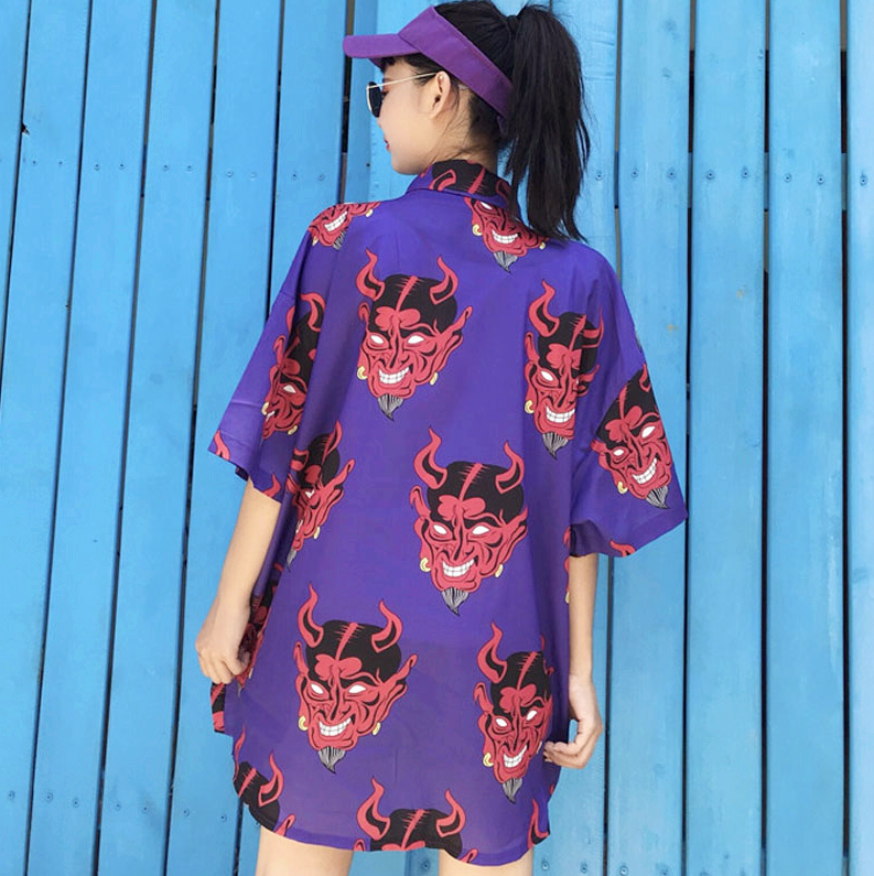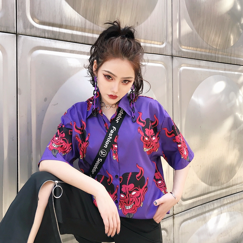 Devil Printed Short Sleeve Blouse