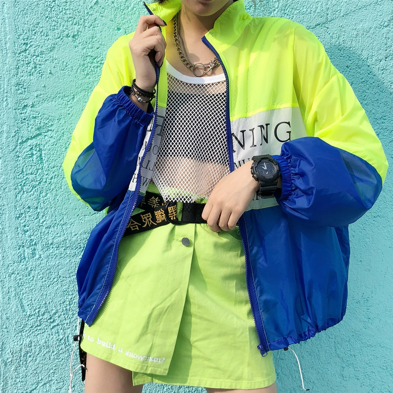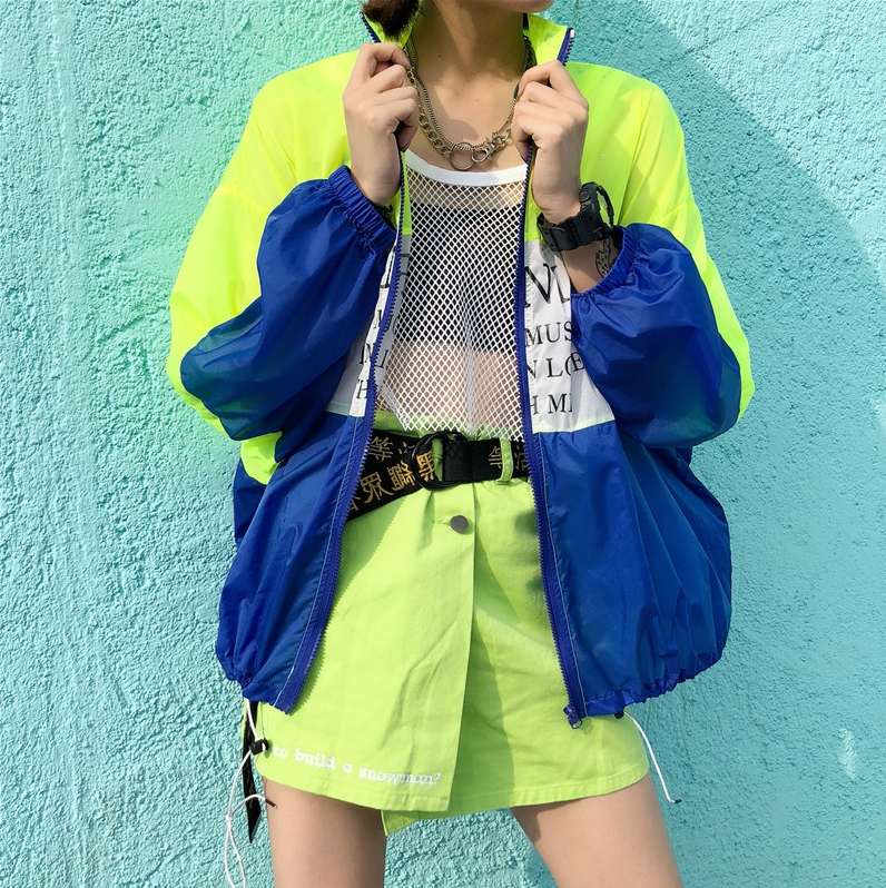 Neon Color Block Windbreaker Jacket