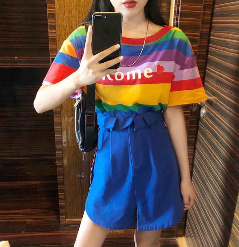♡Color: rainbow ♡Style: print ♡Size: Length: 52cm / 20.5in Bust: 112cm / 44.1in Shoulder: 55cm / 21.7in Sleeve: 18cm / 7.1in