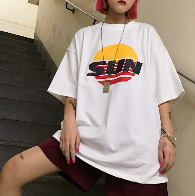 Harajuku SUN Printed Oversized Tee