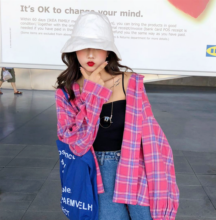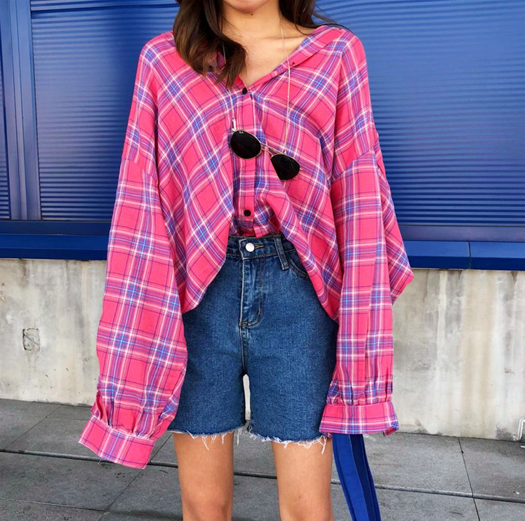 ♡Material: polyester ♡Color: red, blue ♡Style: checks ♡Size: Length: 76cm / 29.9in Bust: 106cm / 41.7in Shoulder: 52cm / 20.5in Sleeve: 50cm / 19.7in