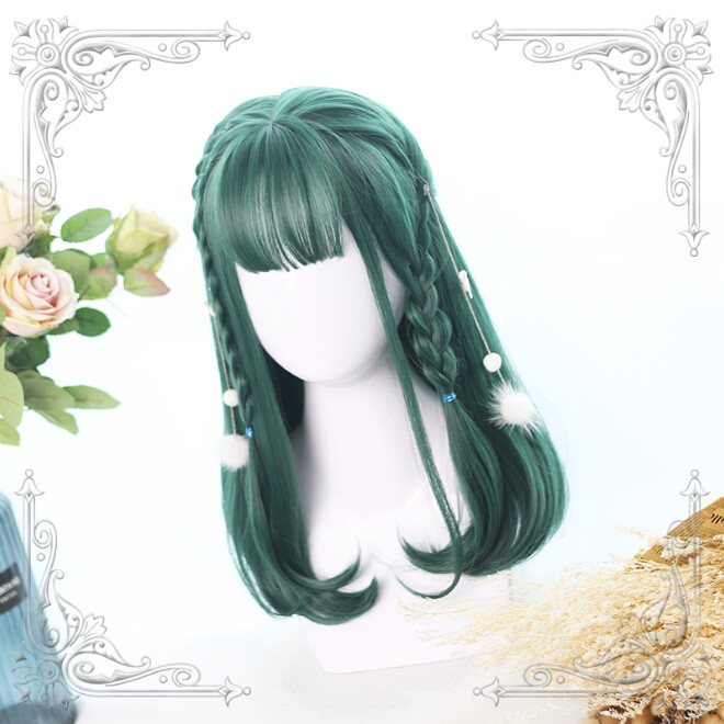 Material:100% High Temperature Fiber; Color: green; Modeling: curly; Length: 40cm; Package include: 1 x wig