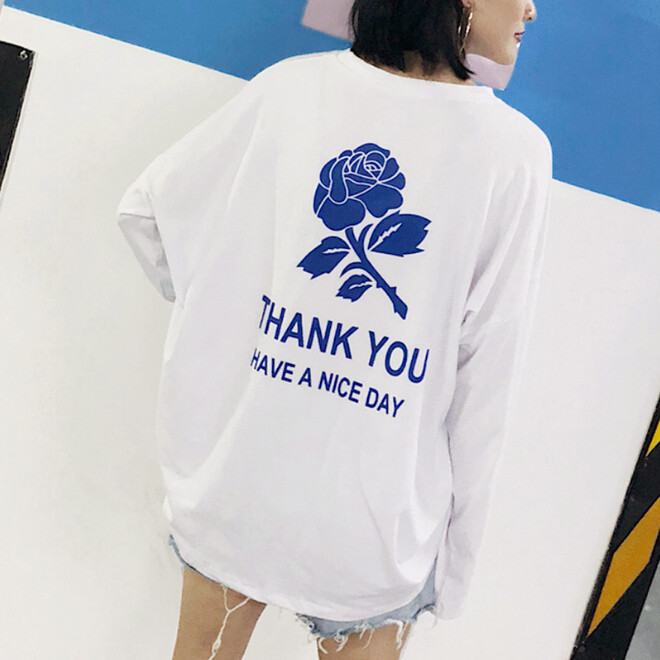 Rose and THANK YOU Printed Long Sleeve T-shirt