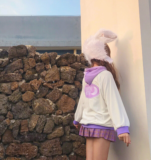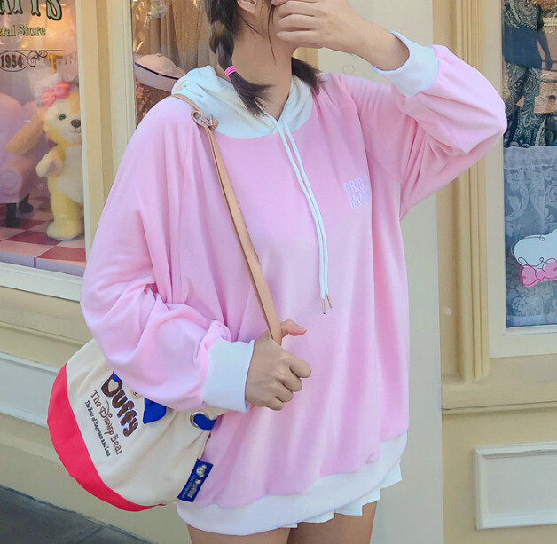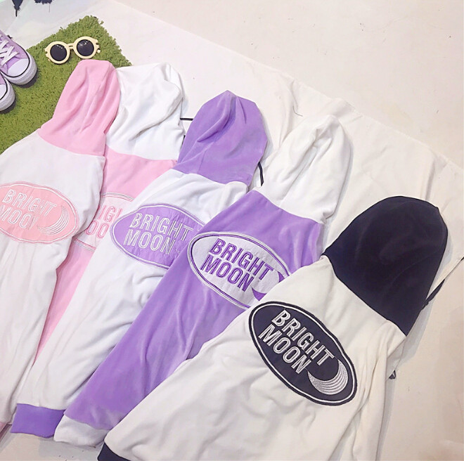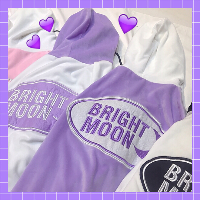 Pastel Color Block BRIGHT MOON Embroidered Hoodie Sweatshirt