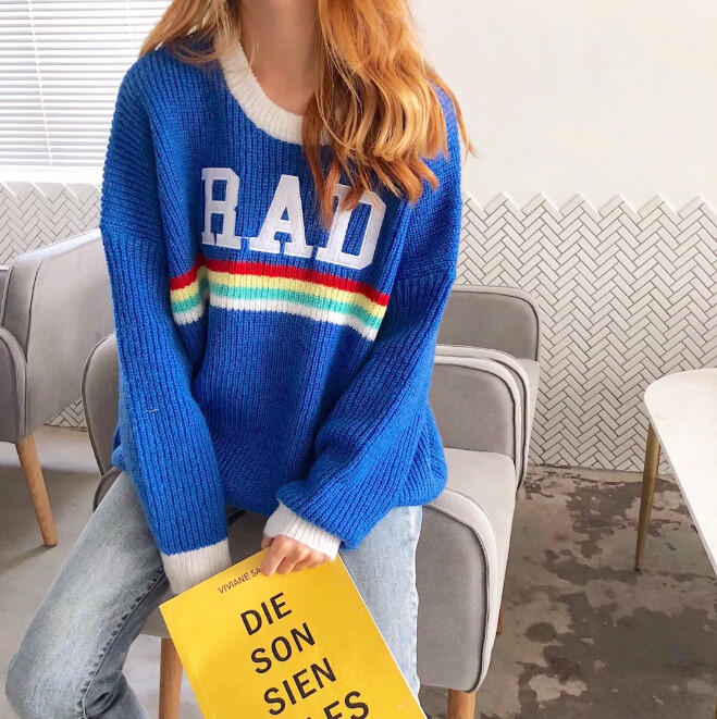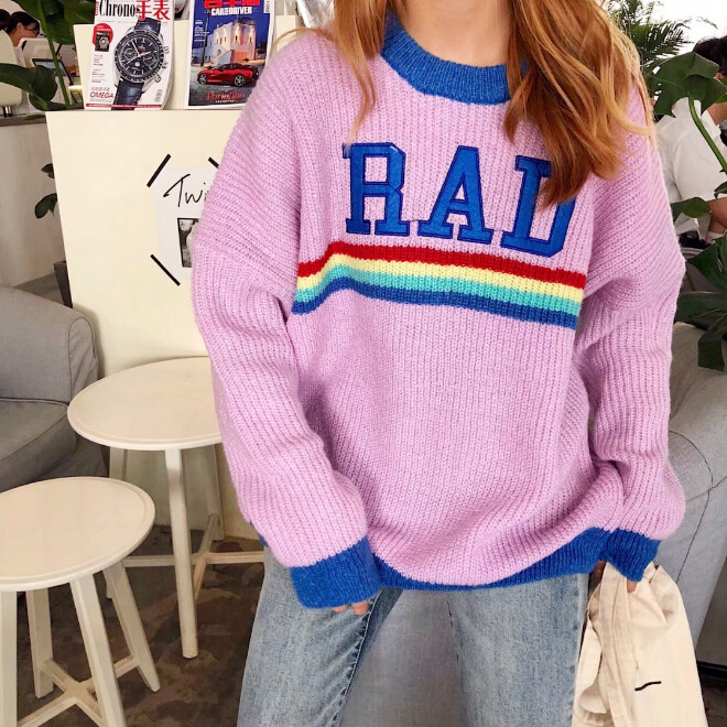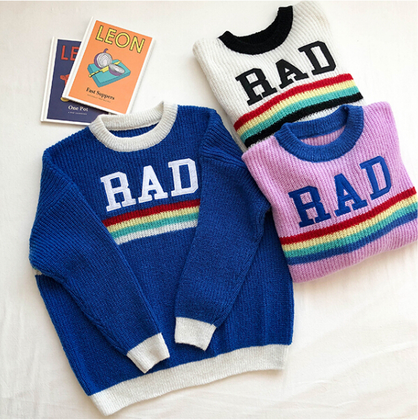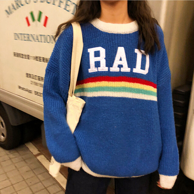 RAD Embroidery Rainbow Stripe Pullover Knit Sweater