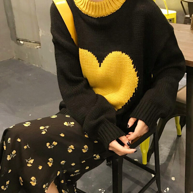 Love Heart Pullover Knit Sweater
