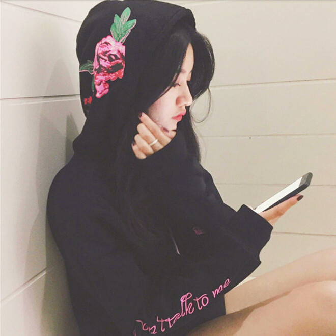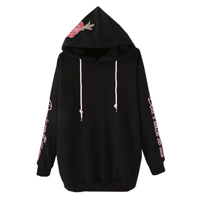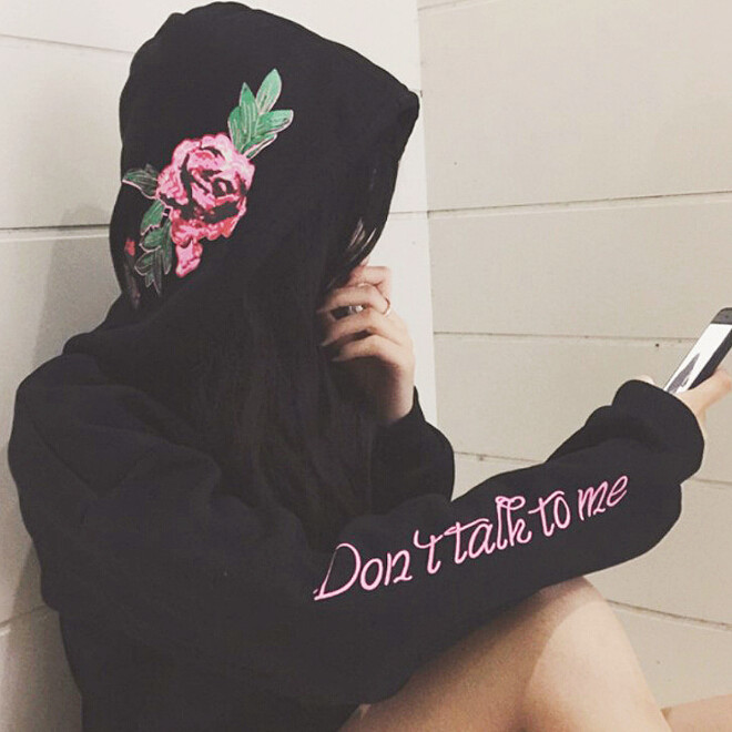 Don't Talk to me Rose Embroidered Hoodie Sweatshirt