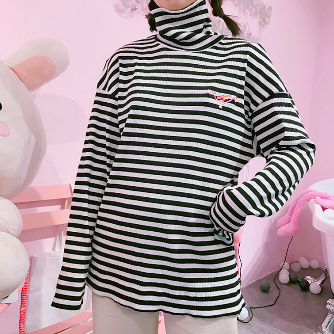 ♡Color: white&black; ♡Style: stripe; ♡Size: Length: 66cm / 26in; Bust: 110cm / 43.3in; Shoulder: 57cm / 22.4in; Sleeve: 55cm / 21.7in;