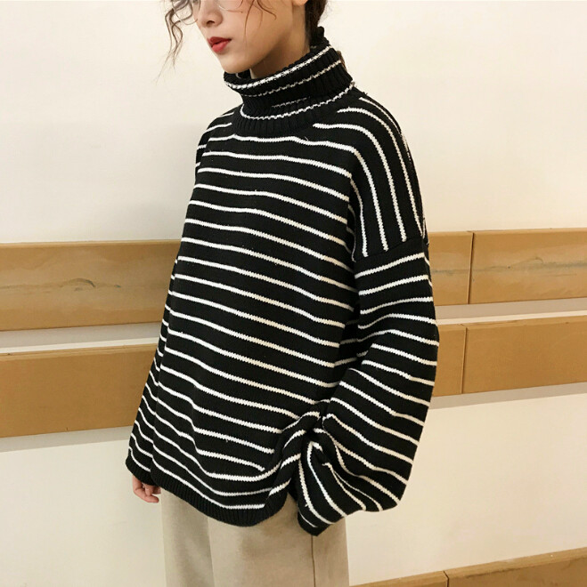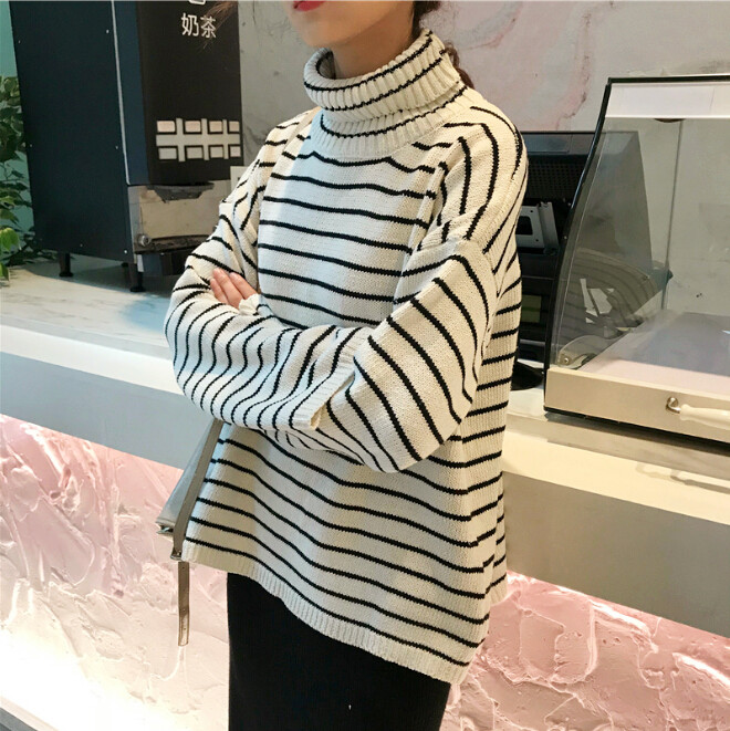 ♡Color: white, black; ♡Style: stripe; ♡Size: Length: 58cm / 22.8in; Bust: 115cm / 45.3in; Shoulder: 58cm / 22.8in; Sleeve: 47cm / 18.5in;