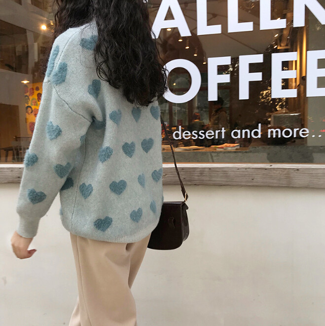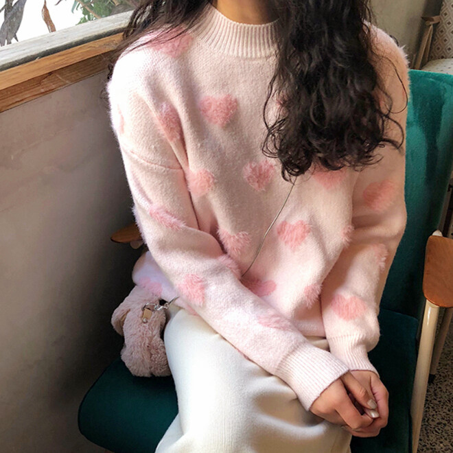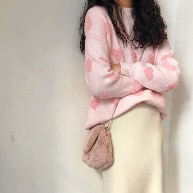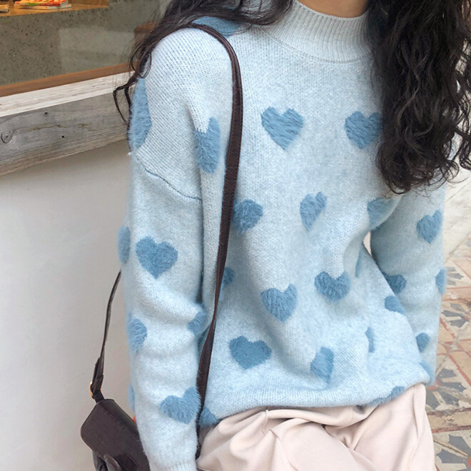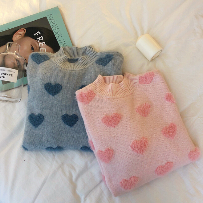 ♡Color: pink, blue; ♡Style: heart; ♡Size: Length: 68cm / 26.8in; Bust: 112cm / 44.1in; Shoulder: 48cm / 18.9in; Sleeve: 54cm / 21.3in;