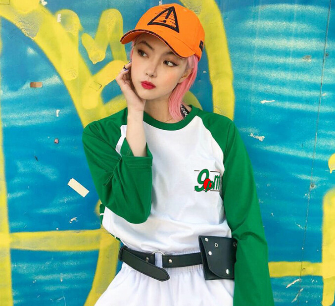 9pm Printed Color Block Long Sleeve T-shirt