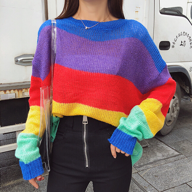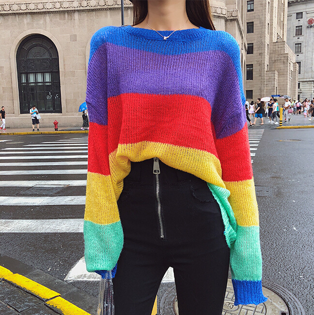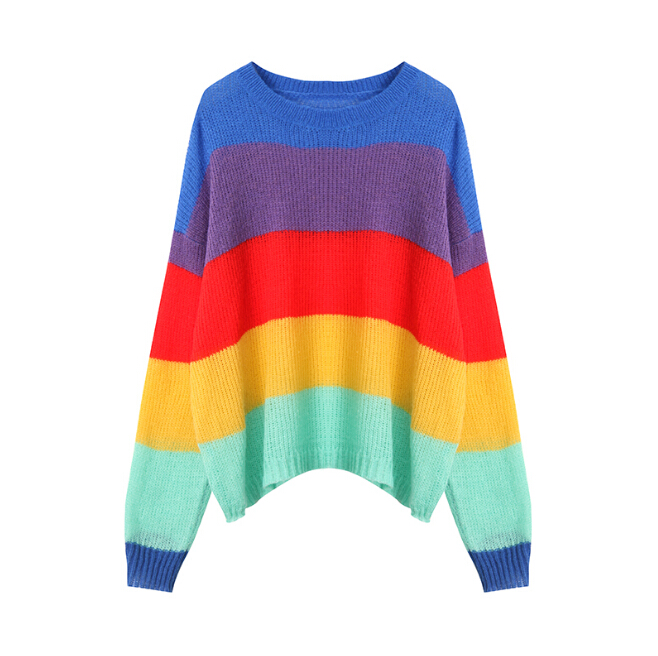 Rainbow Stripe Loose Sweater Knitted Top