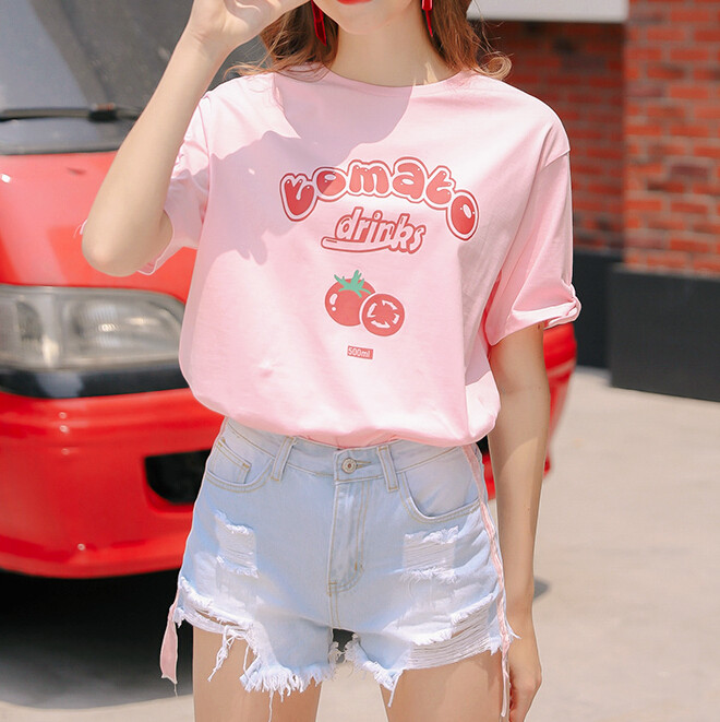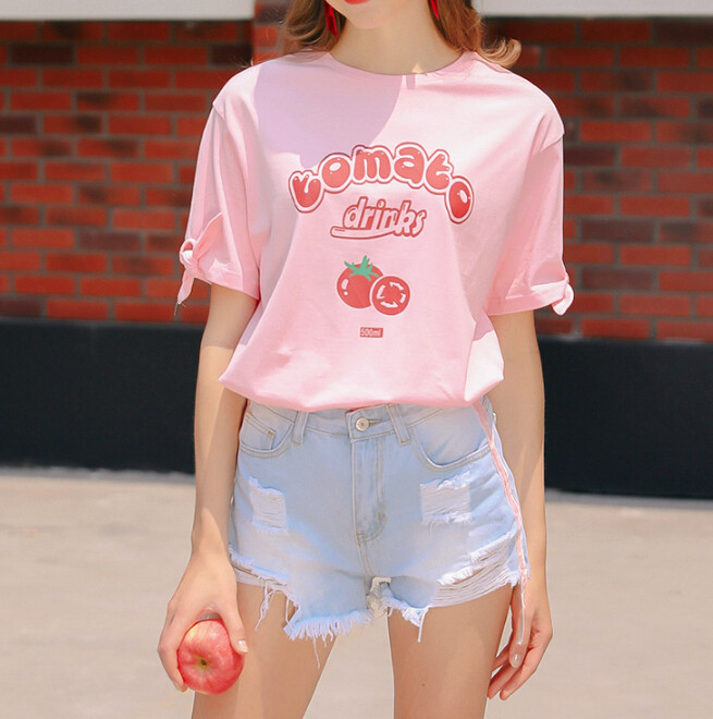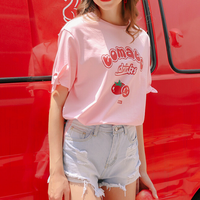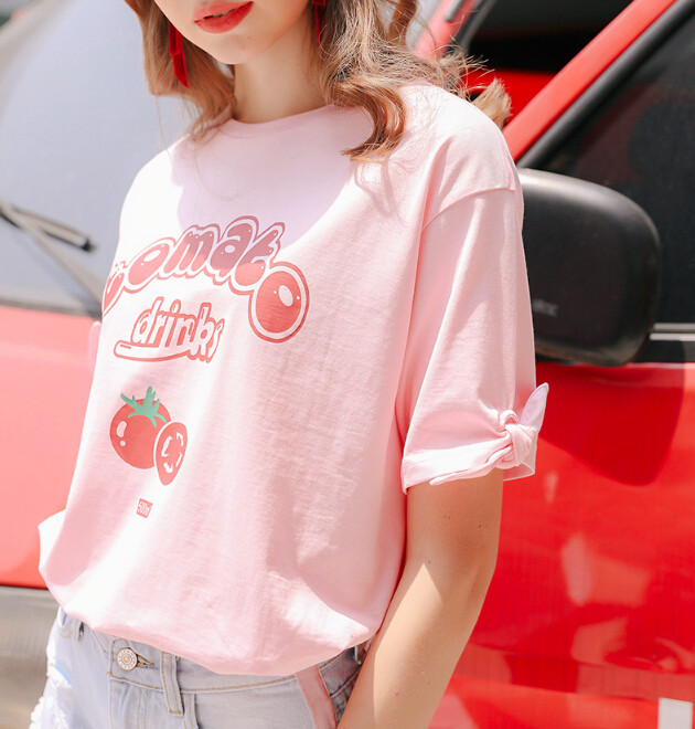 Tomato Drinks Printed Pastel Pink Tee