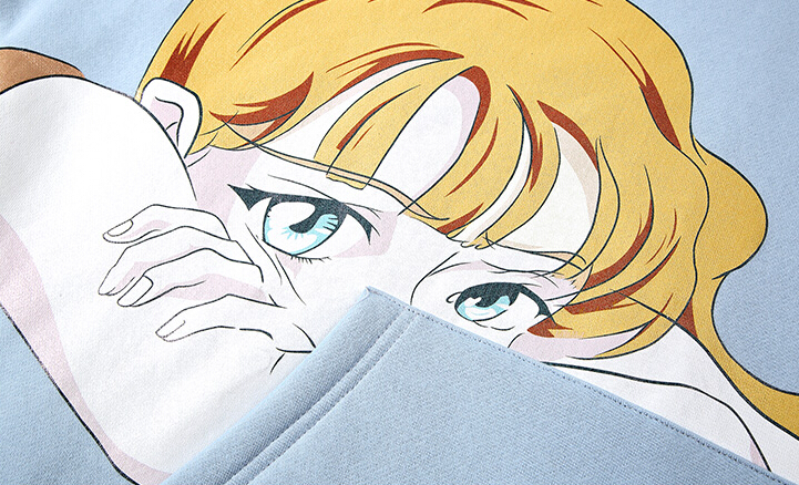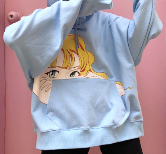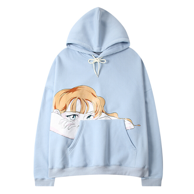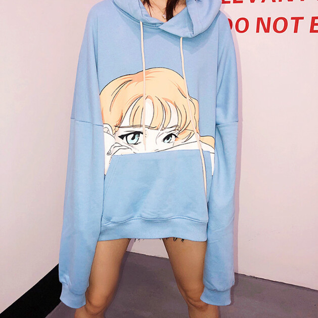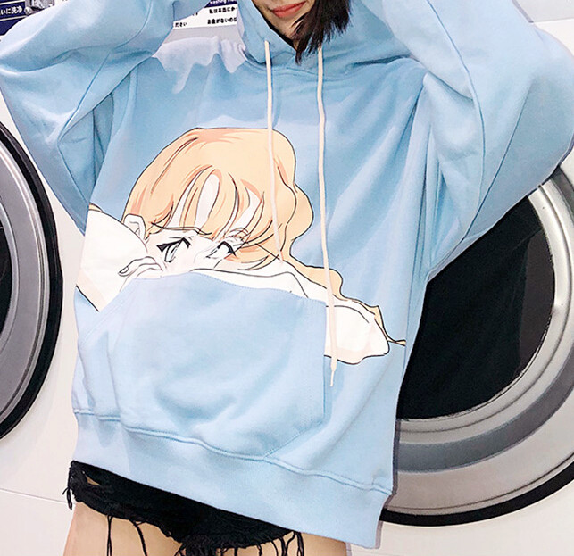 Anime Girl Print Pastel Blue Hoodie Sweatshirt