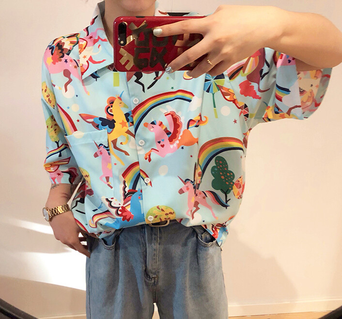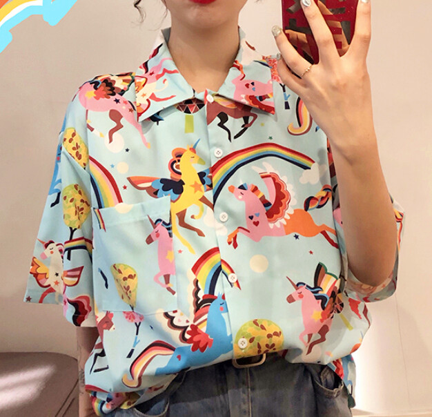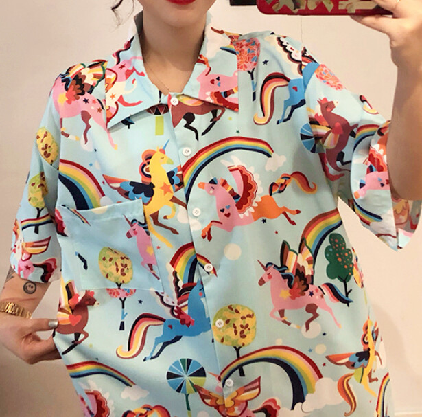♡Material: Polyester; ♡Style: print; ♡Size: Length: 72cm / 28.3in; Bust: 118cm / 46.5in; Shoulder: 48cm / 18.9in; Sleeve: 23cm / 9.1in;