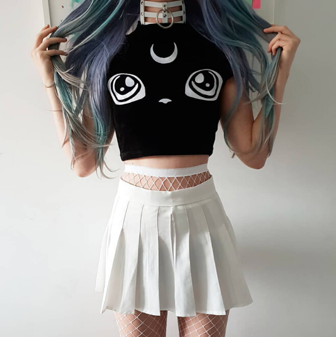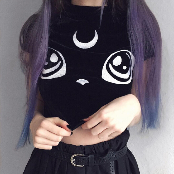 Gothic Sailor Moon Luna Cat Black Velvet Top