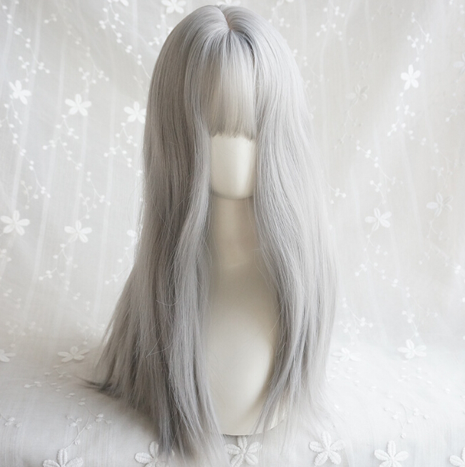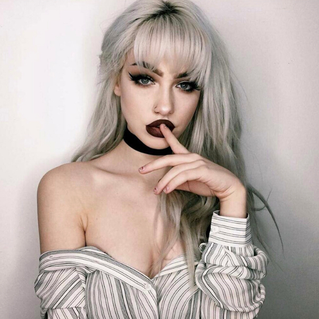 Free Shipping Fashion Silver White Long Wavy Wigs with Bangs