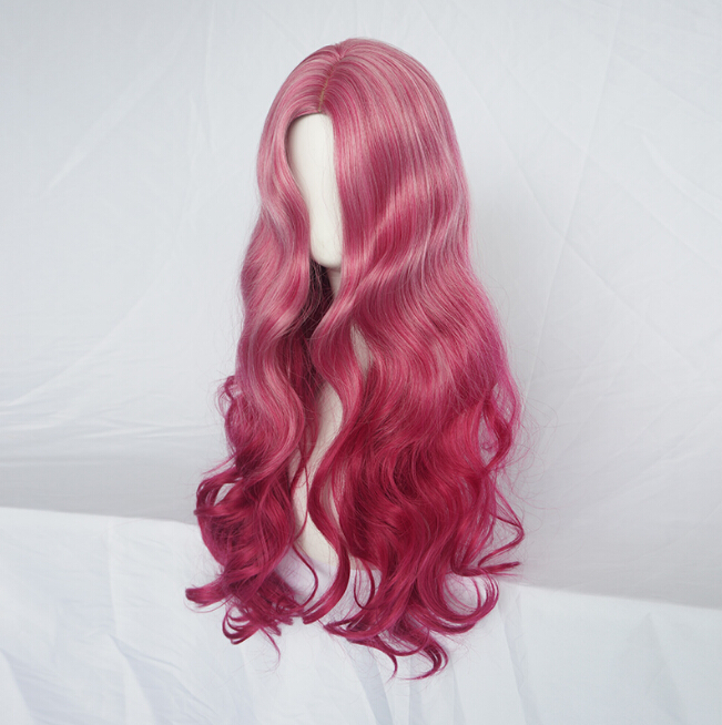 Free Shipping Rose Red Pink Gradient Long Curly Wigs