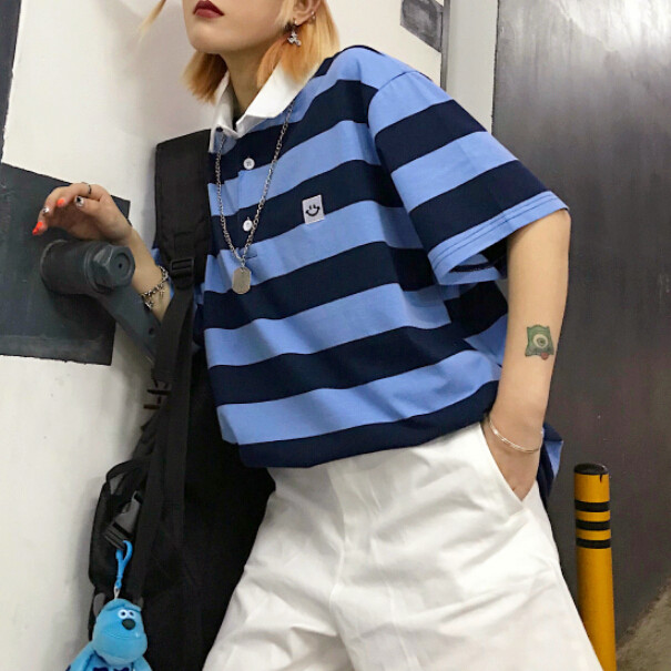 ♡Color: blue, gray; ♡Style: stripe; ♡Size: Length: 70cm / 27.6in; Bust: 114cm / 44.9in;