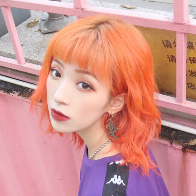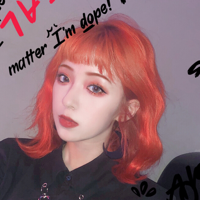 Free Shipping Harajuku Orange Medium Curly Hair Wig with Bangs