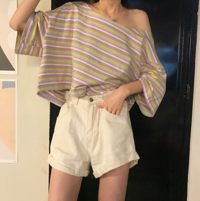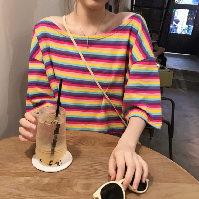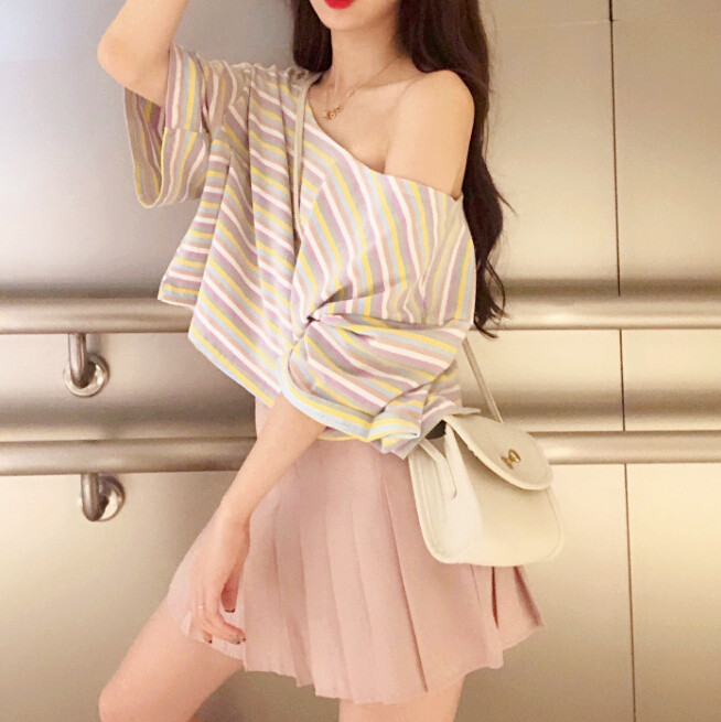 ♡Color: red, white; ♡Style: stripe; ♡Size: Length: 45cm / 17.7in; Bust: 108cm / 42.5in; Sleeve: 22cm / 8.7in;