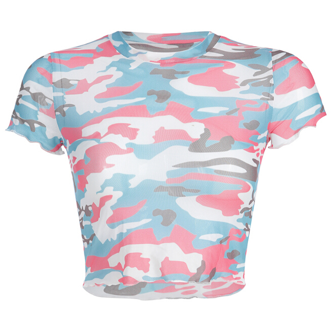 Pastel Color Camouflage Mesh Top