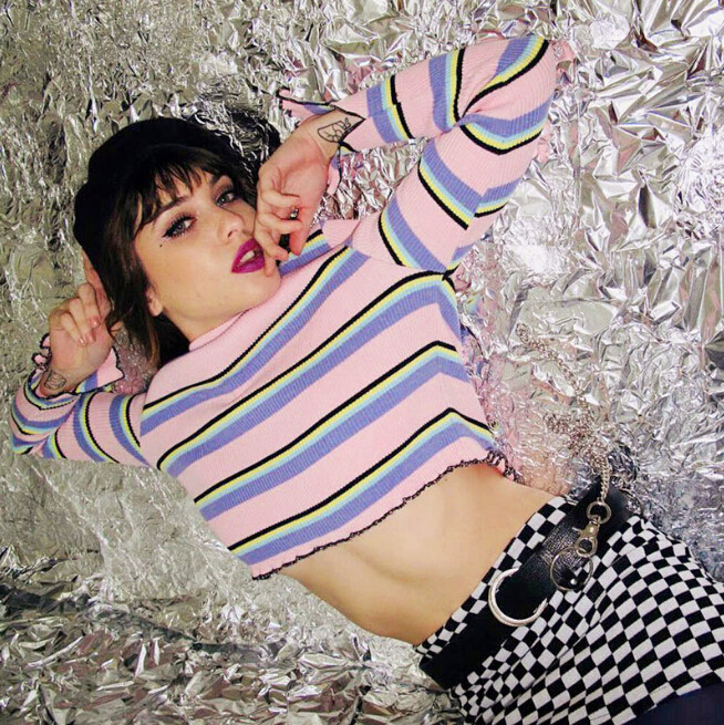 High Collar Pastel Pink Color Block Stripe Long Sleeve Top