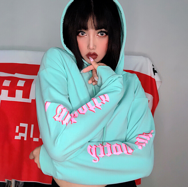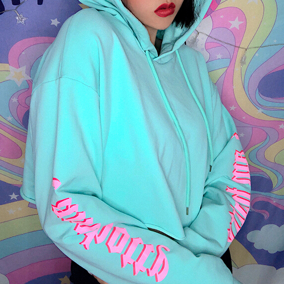 Color Block Pastel Green Hoodie Sweatshirt Top