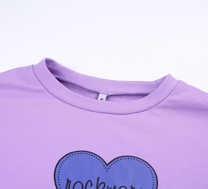 Rockmore Heart Printed Pastel Purple Cropped Sweatshirt