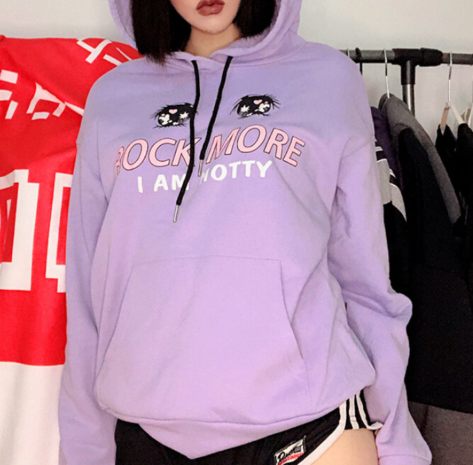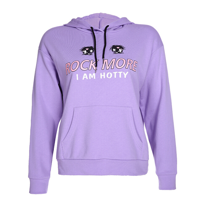 ROCK MORE Eyes Printed Pastel Purple Hoodie Sweatshirt