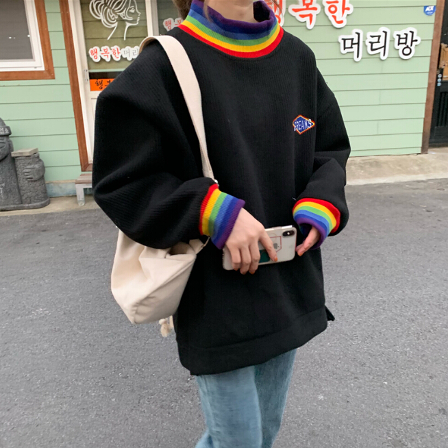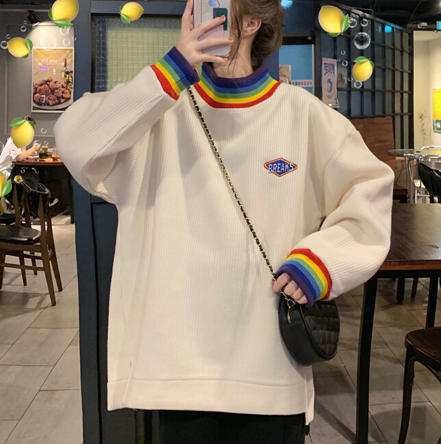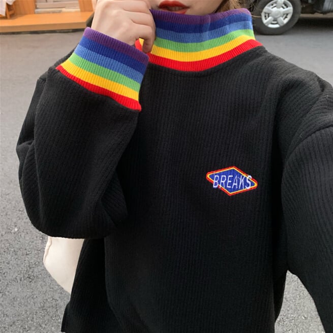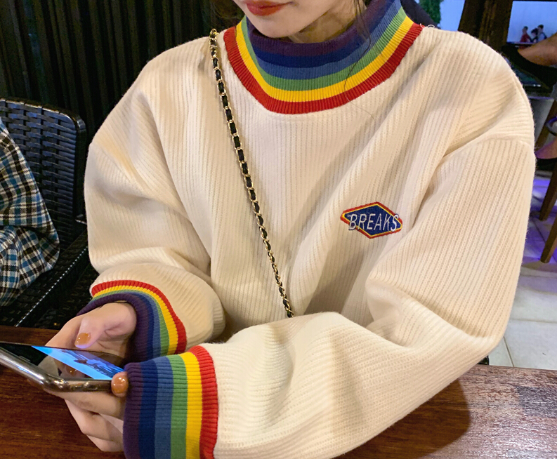 BREAKS Embroidery Rainbow Stripe Knit Sweater